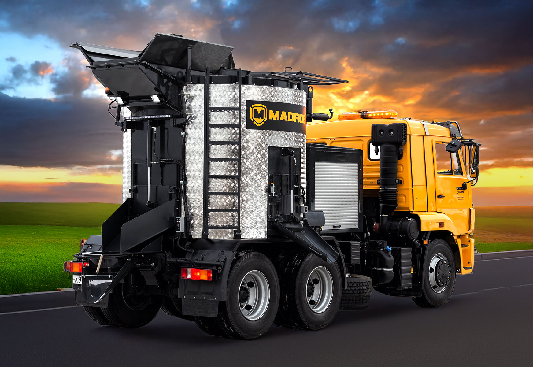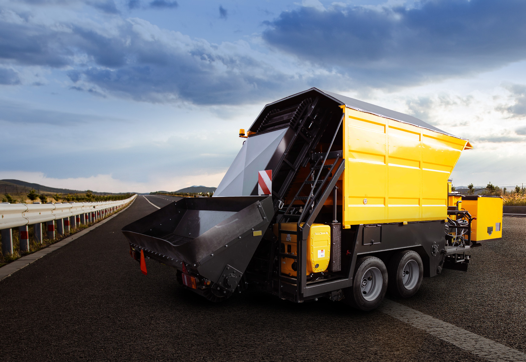 Producimos, entre otros: aspersores, máquinas de reparación parcial, cosechadoras de superficies de carreteras, calderas para asfalto duro y mezclas en frío, pavimentadoras de carreteras, esparcidoras de grava, máquinas de mantenimiento de carreteras en invierno y una amplia gama de pequeños equipos.