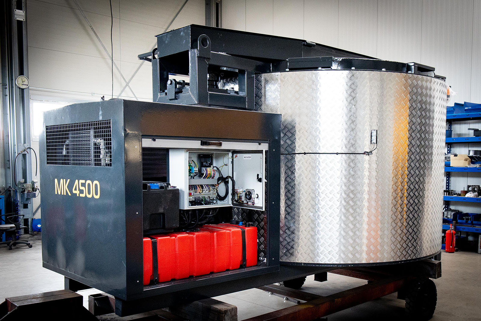 La caldera MK4.5 es una caldera vertical diseñada para transportar asfalto duro premezclado, estándar o modificado con polímeros. También se utiliza para producir mezclas asfálticas según una receta específica. Gracias a su diseño, la máquina puede montarse en un remolque remolcable o en el chasis de un camión con la capacidad de carga adecuada.
